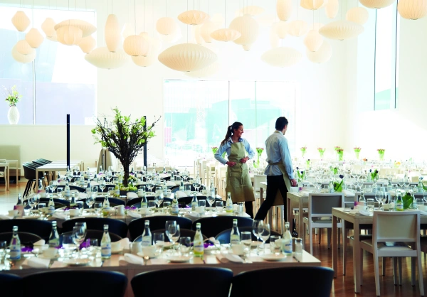 Välkommen upp bland molnen! En trappa upp ryms vår ljusa och luftiga restaurang med 450 platser flexibelt byggd för att kunna fungera både som konferens/festvåning, bufférestaurang samt bordsservering. -